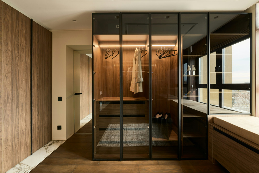 Beleuchtung spielt ebenfalls eine wichtige Rolle: Eingebaute LED-Leisten oder Sensorlichter im Inneren des Schranks erleichtern das Finden von Kleidung und schaffen eine angenehme Atmosphäre. Lichtleisten an den Seiten oder im oberen Bereich setzen zudem stilvolle Akzente.